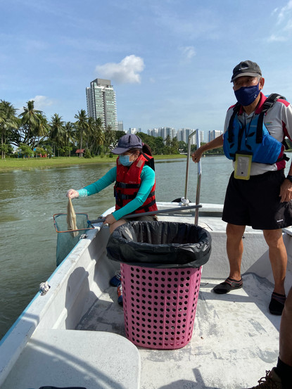 Kicking off the activity at 9.30 am was a brief yet insightful history of Singapore’s water management system followed by the clean- up drive. We were also joined by some of our very enterprising trainers and a bunch of young and talented interns. Keeping in mind the social distancing rules, we were spaced out in smaller groups in different motorboats. The ride that began at the Kallang riverside, took us from the Marina Reservoir through the magnificent Singapore River, passing various landmarks like the Merlion, and Clarke Quay.